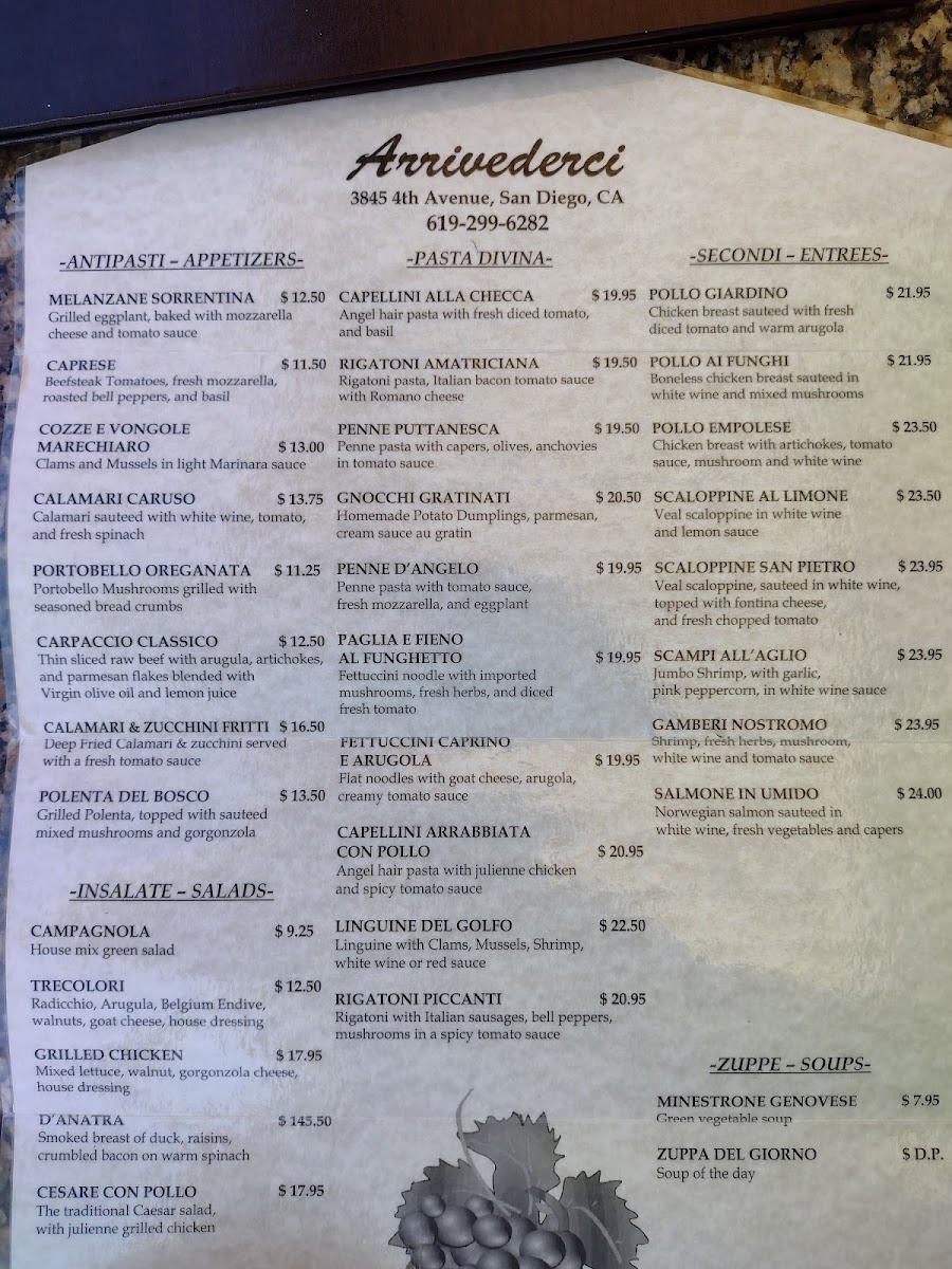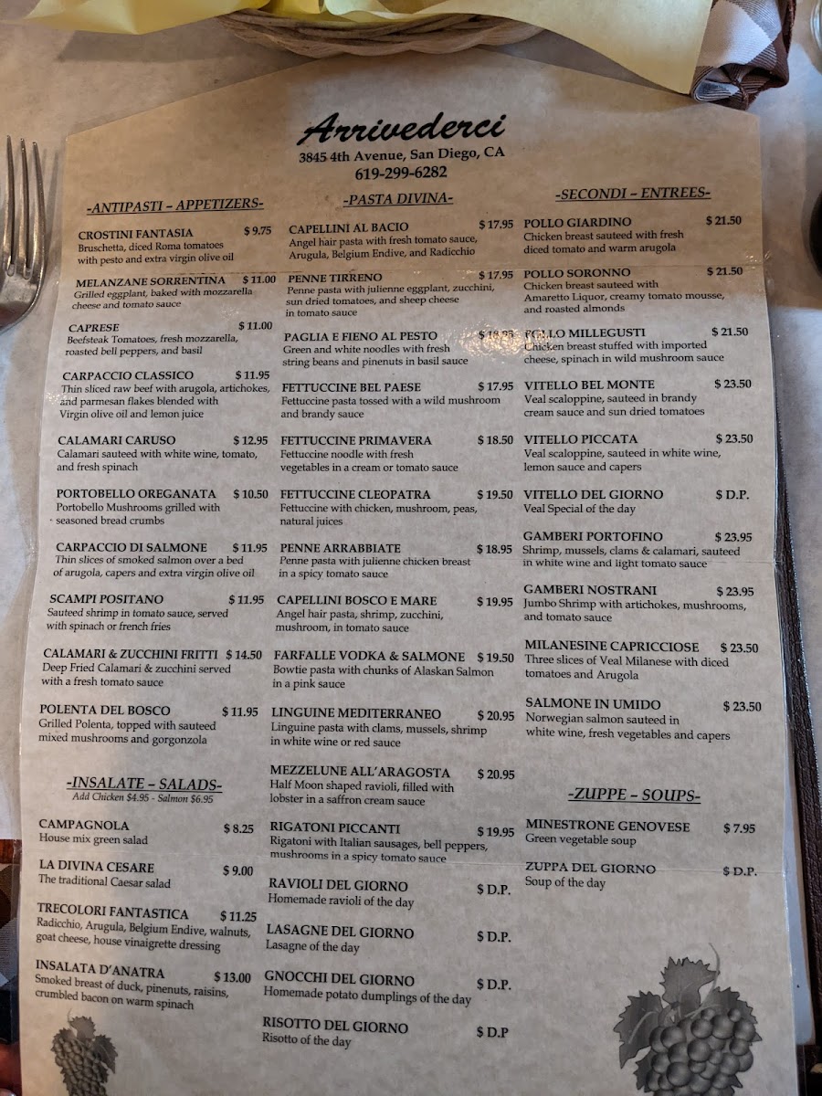 Welcome to Arrivederci Ristorante, a culinary gem nestled in the heart of San Diego. This vibrant establishment serves authentic Italian dishes that transport you straight to Italy with each bite.